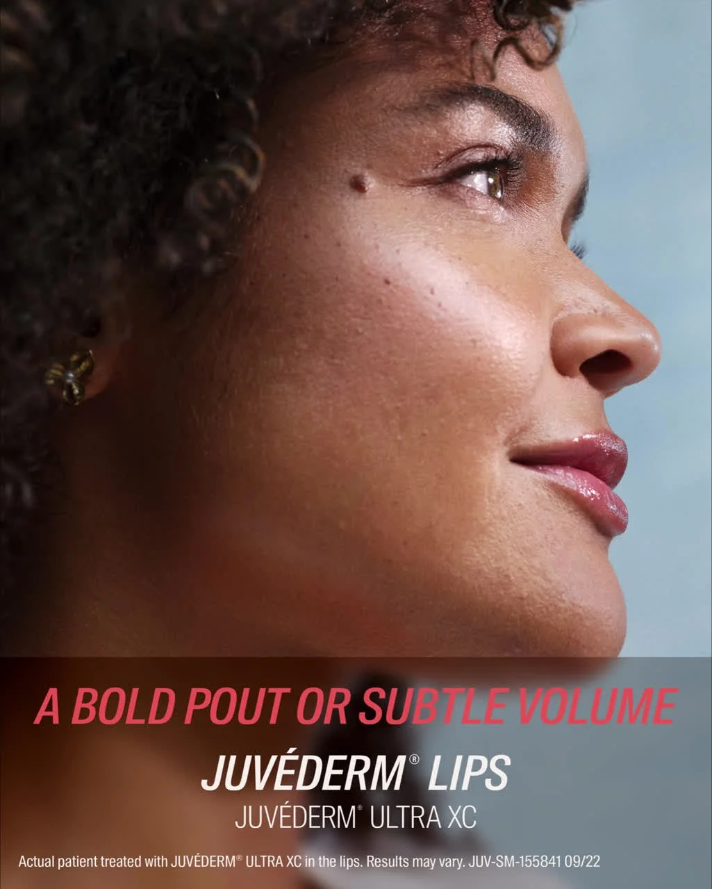 Lips - Dermal fillers can be used to add volume and definition to the lips, enhancing their natural shape and creating a more youthful, hydrated, and plump look.